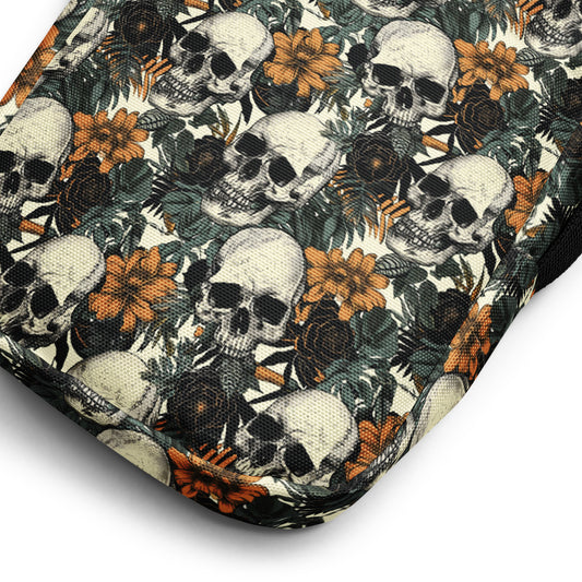 Skulls and Flowers Crossbody Utility Bag Skull Purse Skull Bag Cell Phone Bag (Free Shipping)
